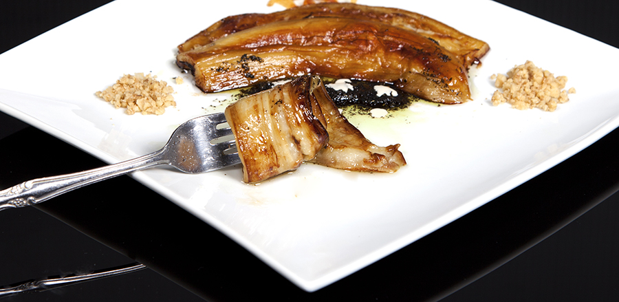 Eggplant, Garlic, Salt, Pepper, Canola Oil